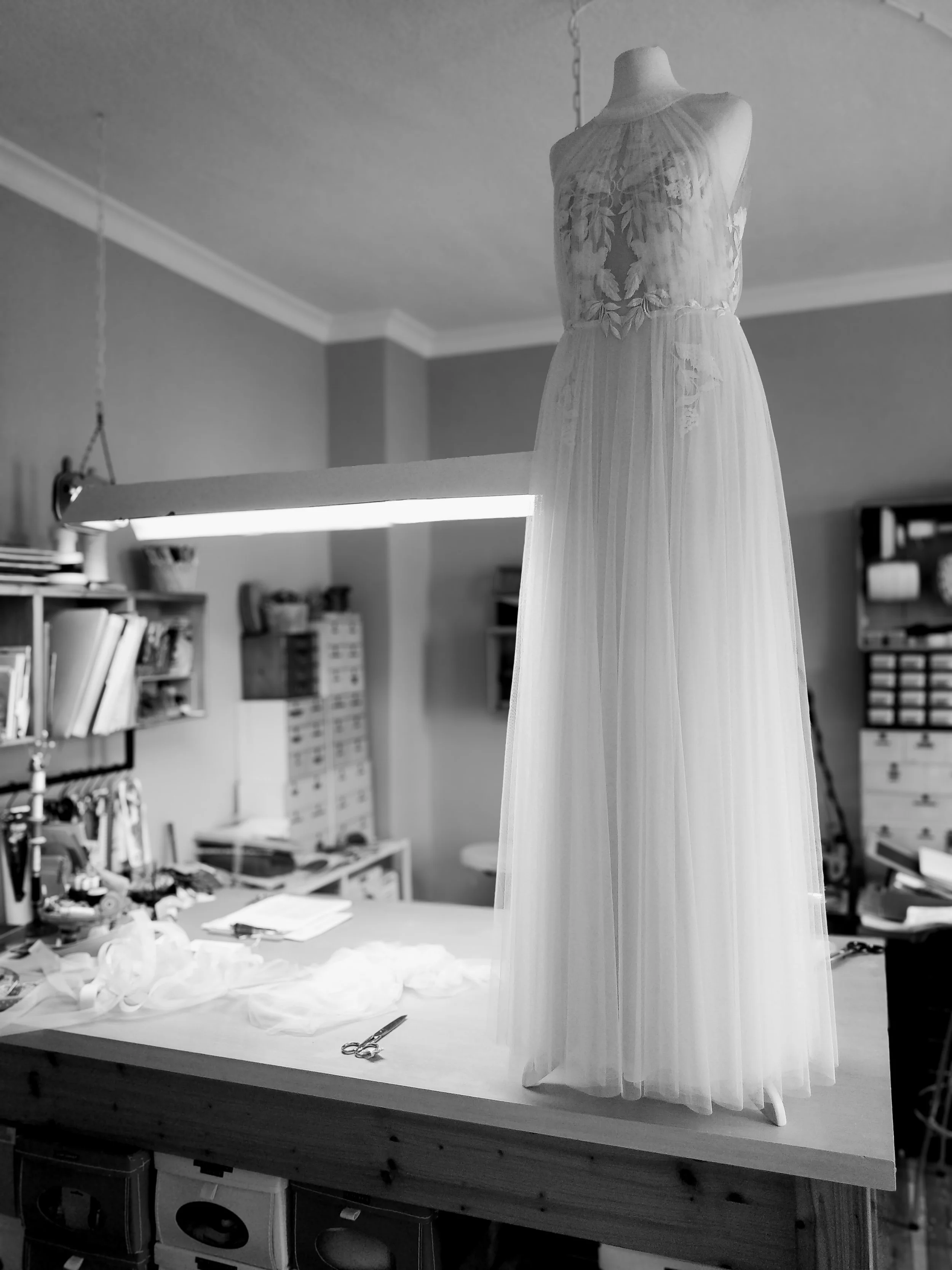 Nähen von Brautkleidänderungen und Maßanfertigungen. Hochwertige Verarbeitung feiner Stoffe wie Spitzen, Tüll, Organza, Chiffon, Satin etc.